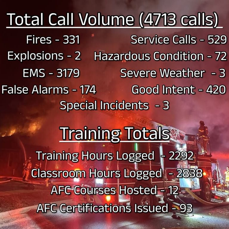 TDFR annual call volume numbers are in. In 2025, Theodore Dawes Fire Rescue responded to 4713 calls (This was a 4.98% decrease in call volume from 2024). These calls included: